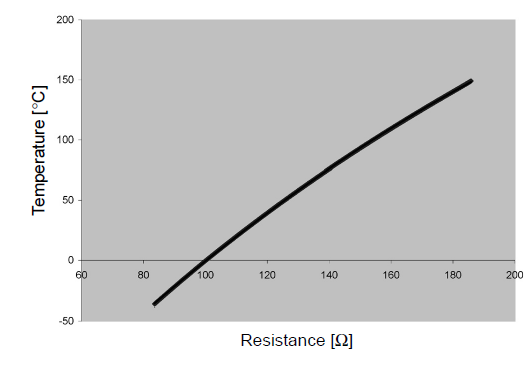 보통 PT100 (0 °C 에서 100 Ω) 센서를 많이 사용한다.