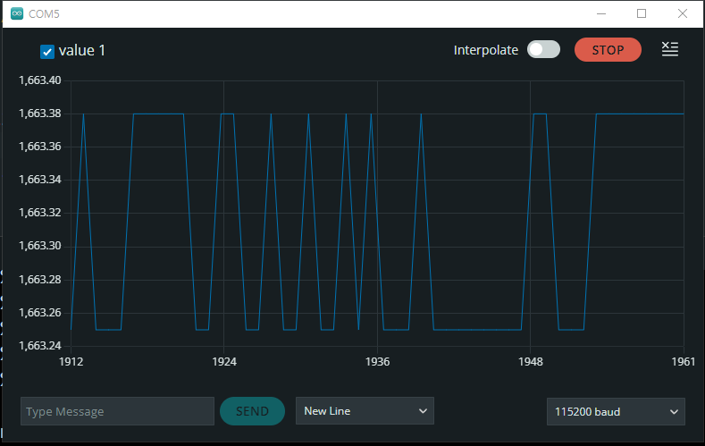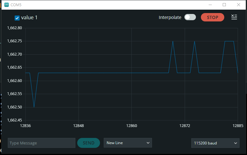 - 즉, 이상적으로는 오프셋 전압이1650mV가 유지되어야 한다. 그러나 ADS1115 ADC를 통하여 측정해본 결과는 1640~1665mV로 미세하게 오프셋 전압이 유지되지 못하는 현상이 있었다.