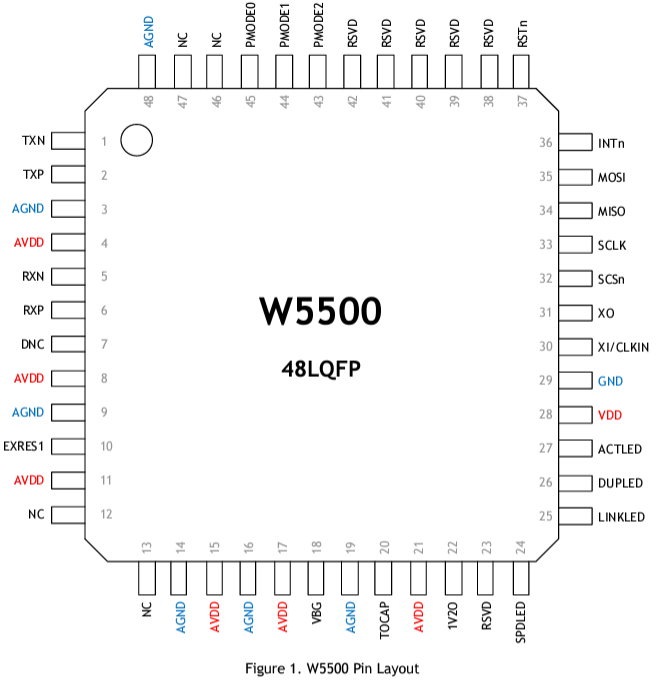 - 임베디드에서 Ethernet 구현을 위해 주로 많이 사용되는 칩은 Wiznet 사의 W5500이다.