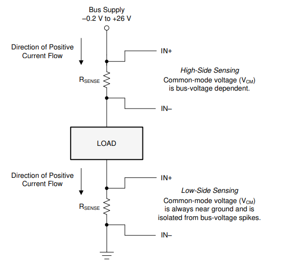- 부하가 측정 회로의 위쪽에 위치하면 Low Side (로우 사이드)가 되고 부하가 측정 회로의 아래쪽에 위치하면 High Side (하이드 사이드)가 된다
