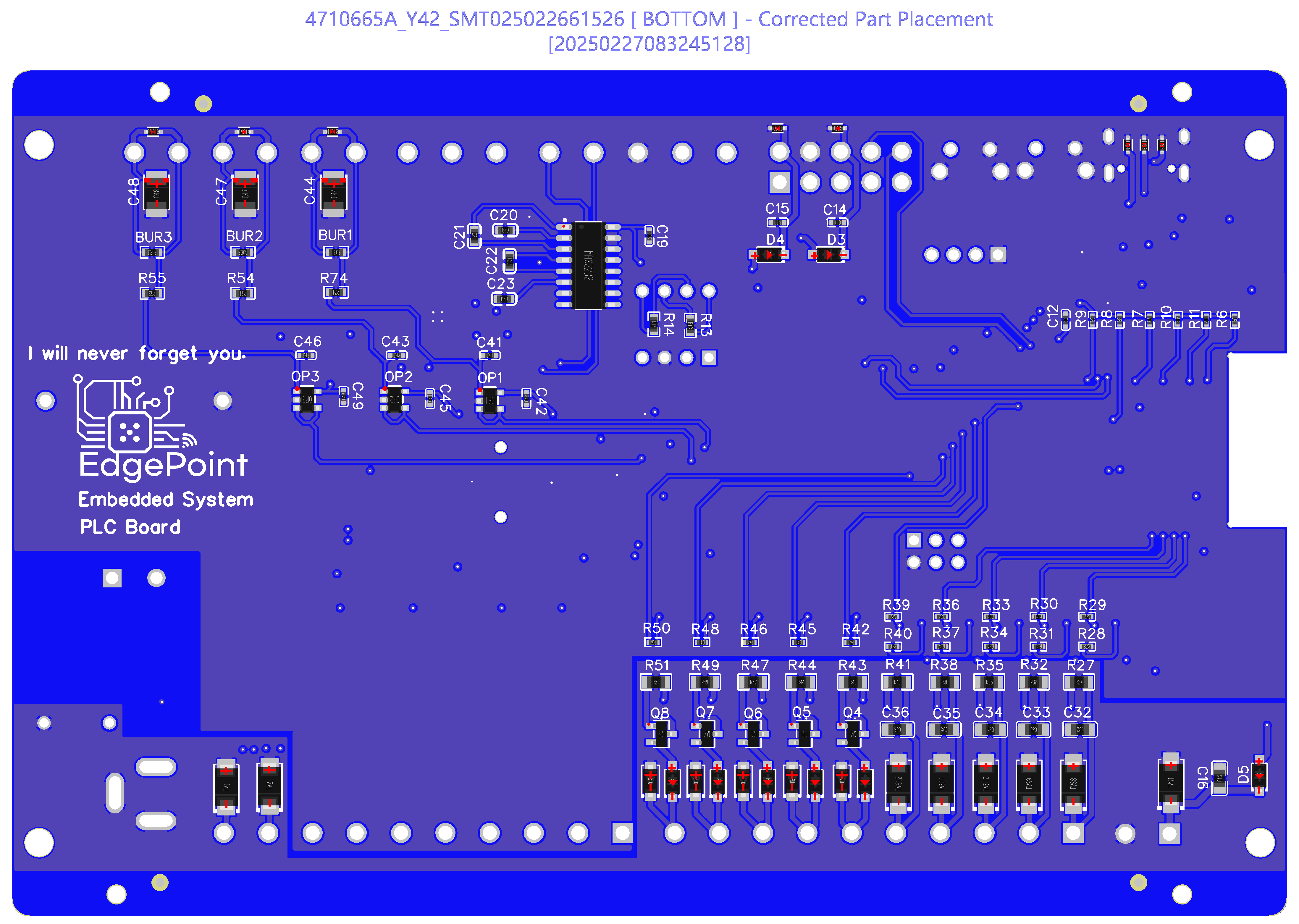 - 보드 양면에 부품들을 배치하여 SMT를 진행하기로 결정하였다. 단면에 부품들을 모두 배치를 시도해봤지만 부품 간 간격이 매우 가깝기 때문에 쇼트 가능성이나 배선의 불편함이 동반된다. (물론 단면 부품 배치가 SMT 외주에는 비용이 훨씬 덜 든다. 대략 1.5배 정도 차이가 났었던 걸로 기억한다. 발주 비용절감을 포기한 샘이다...)