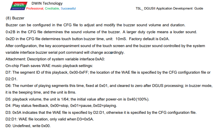 - DWIN HMI에서 부저를 울리는 명령어를 전송 (0x00A0 주소에 0x7D 값 저장)