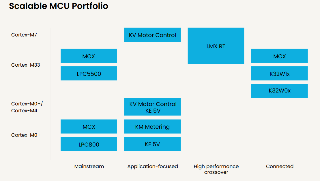 - 저가형(M0, M3) → 중급형(M4, M33) → 고성능(M7, A7)까지 선택 가능