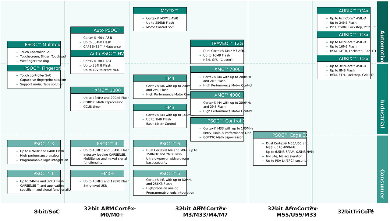 - XMC: 산업용 MCU, ARM Cortex-M 기반