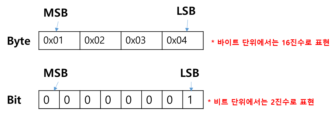 MSB(Most Significant Bit/Byte)는 비트단위에서 최상위 비트를 의미하고, 바이트 단위에서는 최상위 바이트를 의미