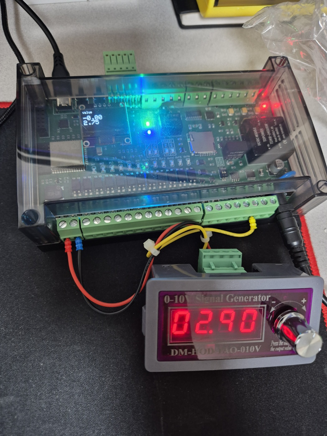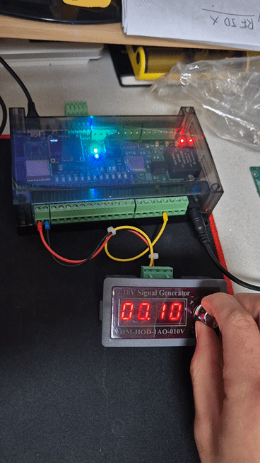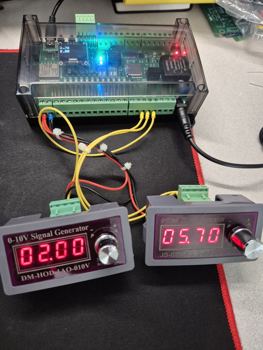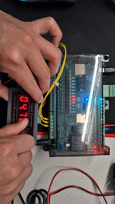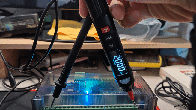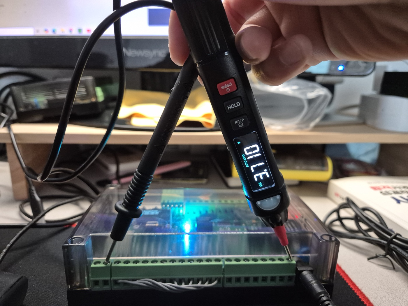 - 이후 간단한 펌웨어 작업 후 OUTPUT 단자와 INPUT 단자를 연결하여 입출력이 정상 동작하고 있음을 확인하였습니다.