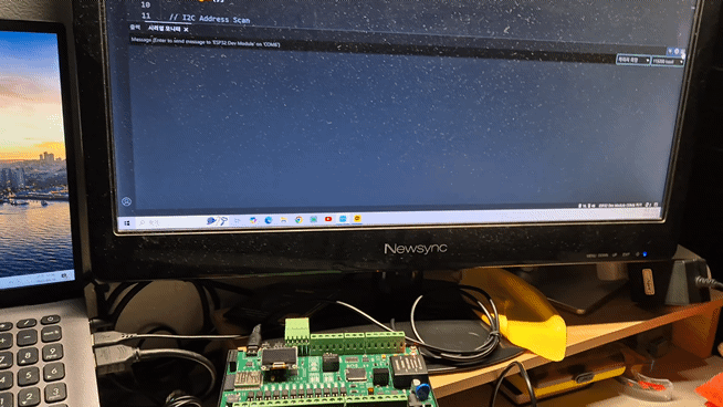 - 보드 장치를 USB에 연결하여 CP2102가 인식되는 것을 확인 후에 I2C 스캐너 펌웨어 업로드를 진행하였습니다.