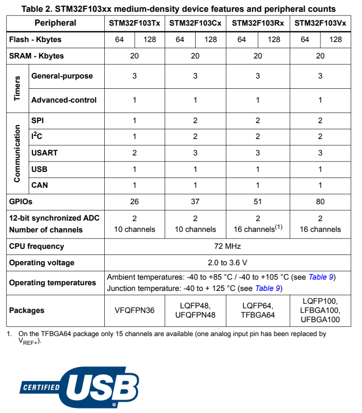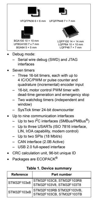 | F103Vx | LQFP100, LFBGA100, UFBGA100 |