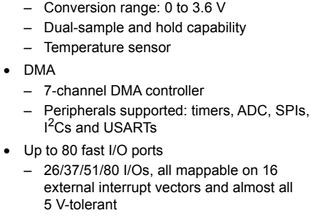 with 64 or 128 KB Flash, USB, CAN, 7 timers, 2 ADCs, 9 com. interfaces