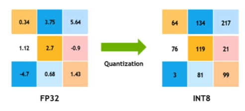 - 여기에서는 AI 연산에 사용되는 자세한 숫자들을 더 낮은 정밀도의 숫자로 바꿔버리는 과정이라고 볼 수 있다.