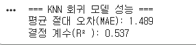 print("=== KNN 회귀 모델 성능 ===")