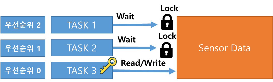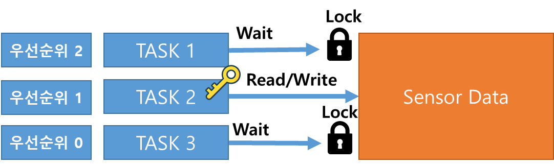 - RTOS를 임베디드 시스템에 적용하고 설계할 때 반드시 여러 개의 TASK가 하나의 변수나 구조체 등의 데이터를 참조하여 Read, Write 해야하는 상황이 있다.