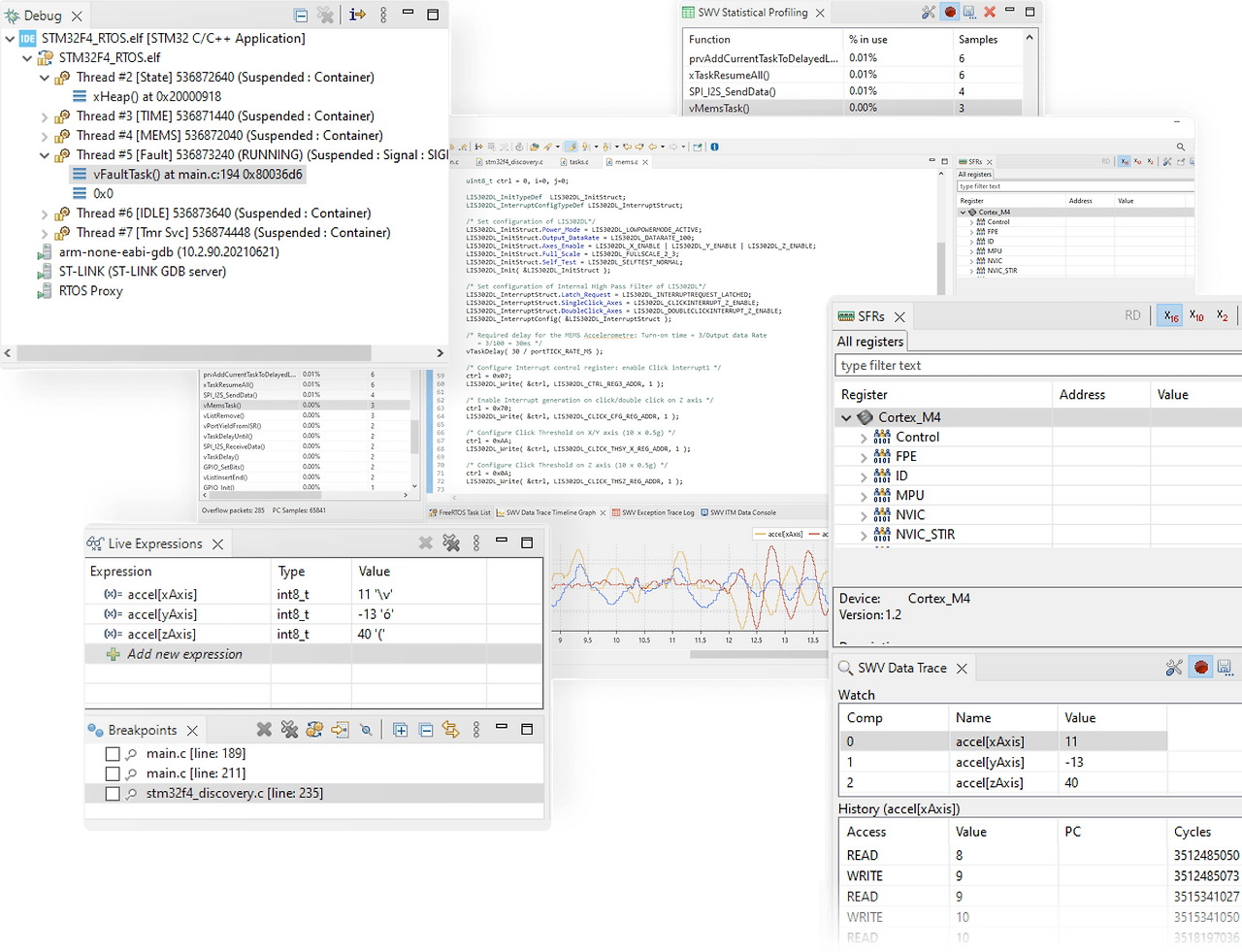 - 디버깅 (BreakPoint, Register, Memory, RTOS veiw)