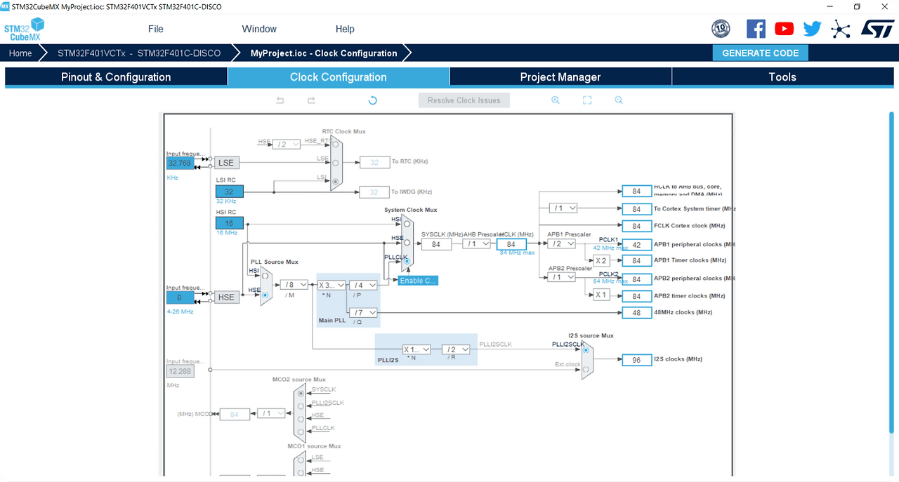 ④ MCU 설정 (Configuration) : Cube MX