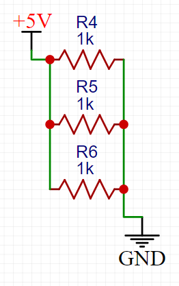 병렬로 연결된 저항은 곱/합으로 구할 수 있다. 즉, 위 회로에서 R4,R5,R6의 전체 저항은 R4*R5*R6 / R4+R5+R6 이다.