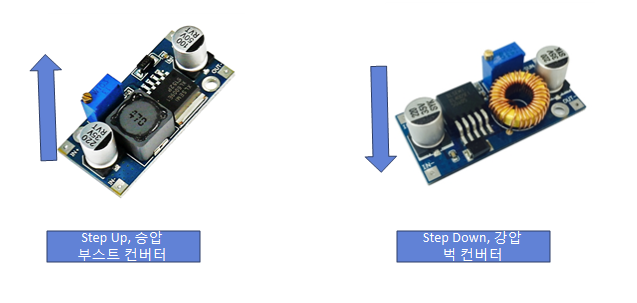 반대로 낮은 입력 전압에서 높은 출력 전압을 만들어 내는 경우 Step Up, 승압이라고 하며 부스트 컨버터가 사용된다.