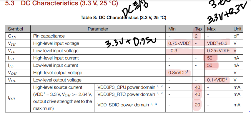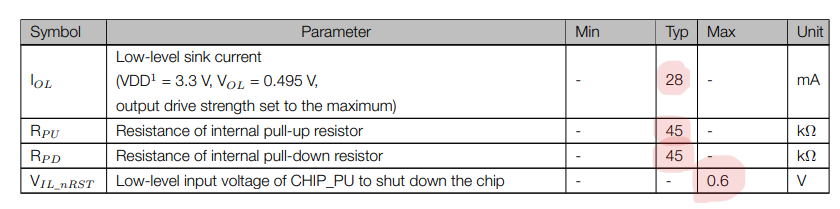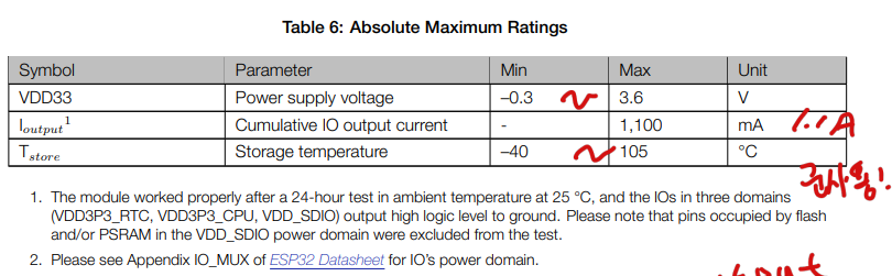 ESP32-WROOM-32의 경우 최대 절대 정격에 대한 3가지 파라메터가 있다.