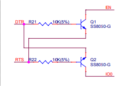 따라서 기본적으로 풀업저항이 되어있는 IO0 (평상시에 3.3V, HIGH가 유지됨)를 0V를 만들어 주고 MCU를 다시 활성화 하면 다운로드 모드가 된다. (IO2는 기본적으로 풀다운이 되어있기 때문에 0V가 유지 될것이므로 IO2는 내비두어도 된다)이를 응용하여 CP2102의 DTR,RTS 신호를 사용해 트랜지스터로 제어하면 자동적으로 펌웨어 다운로드가 되는 회로가 된다.
