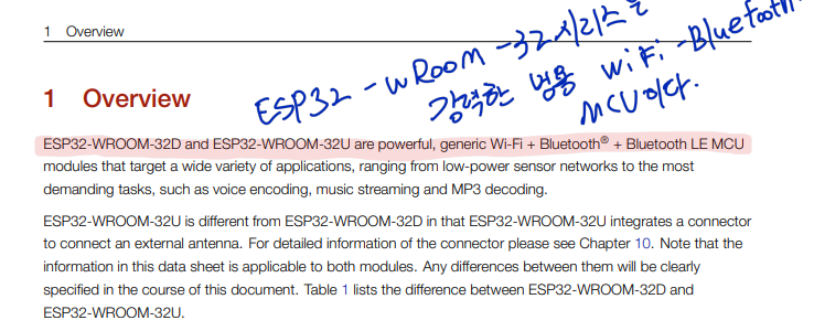 ESPRESSIF 제조사에서 제공되는 데이터시트는 2가지 MCU에 대한 정보들을 담고 있다.