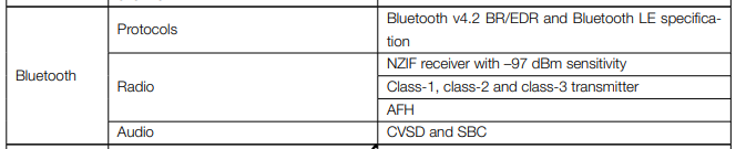 블루투스는 v4.2와 블루투스LE를 지원한다.