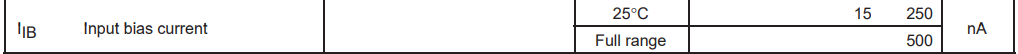 이상적인 OPAMP는 입력 임피던스가 무한대라 단자 내부로 전류가 전혀 흐르지 않아야 하지만, 실제로는 V+,V- 단자 내부로 미소량의 전류가 흘러 들어간다. 이 전류를 입력 바이어스 전류라 한다.