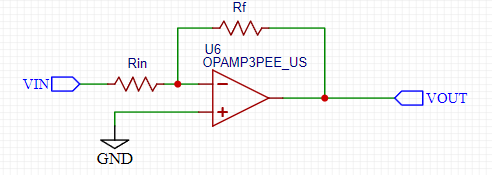 -반전 단자로 신호 입력을 받게 되어 신호가 역전되어 출력된다. 앞에서 본 비반전 증폭기의 증폭률은 항상 1보다 커서 전압의 증폭만 가능하지만, 반전 증폭기는 증폭률이 1보다 작게 할 수 있어 전압을 감소 시킬수 있다.